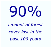 In the late nineteenth century, about 35-40 percent of Ethiopia was covered with forest. Over-exploitation has massively depleted the country's woodlands to the extent that cover had dwindled to less than 4 percent of the total land surface by the turn of the millennium. The current rate of deforestation is estimated to be in the region of 150,000 - 200,000 hectares per year and the FAO estimate that fertile topsoil is lost at a rate of one billion cubic metres annually. |