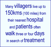During the rainy season the rugged landscape, dissected by steep valleys and swift-flowing rivers, forms an effective barrier to patients seeking medical assistance and, even during dry periods, these isolated communities are cut off from any effective health care. Providing a comprehensive health care service which is accessible to local communities is beyond the scope of Ethiopia's government.